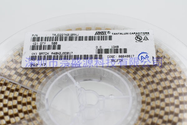 AVX鉭電容,AVX就是一家從事無源電子元器件和互連接產品的設計、開發、生產和銷售的公司,鉭電容是由稀有金屬鉭加工而成,先把鉭磨成微細粉,再與其它的介質一起經燒結而成。目前的工藝有干粉成型法和濕粉成型法兩種。鉭電容由于金屬鉭的固有本性,具有穩定好、不隨環境的變化而改變、能做到容值很大等特點,在某些方面具有陶瓷電容不可比較的一些特性,因此在很多無法使用陶瓷電容的電路上鉭電容被廣泛采用。其中AVX公司生產的鉭電容的產量相當可觀。