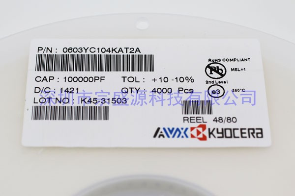 AVX陶瓷電容 0603 16V 0.1UF 0603YC104KAT2A