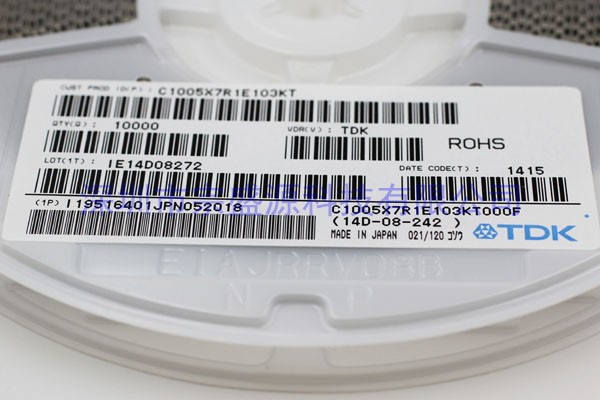 TDK陶瓷電容 1005 25V 0.01UF C1005X7R1E103KT