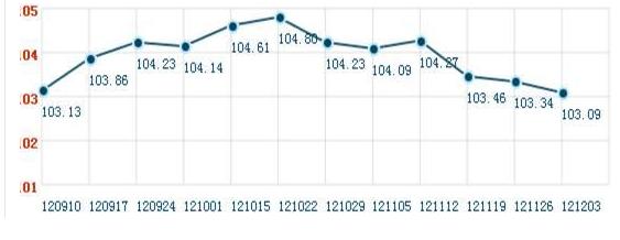 從61項細分指數類別來看,部分品種價格指數波動幅度較大,車載逆變器和鼠標價格指數漲幅分別為3.00%和2.01%;另外平板電腦、路由器、MP4、數碼相機等跌幅較明顯,均超過2%,其中平板電腦指數跌幅4.32%位居第一。