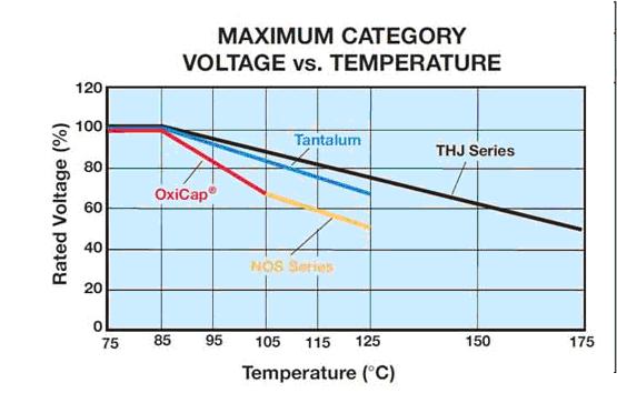 這是在一個電容器上可以連續施加的最高電壓,在+85°C 時它等于額定電壓,在125 °C時它是2/3VR,超過這個溫度會有一個線性的降額。