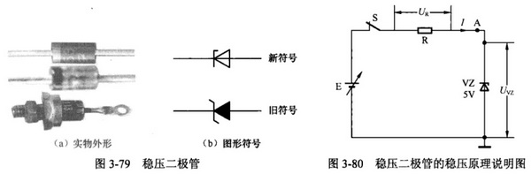 在電路中,穩(wěn)壓二極管可以穩(wěn)定電壓。要讓穩(wěn)壓二極管起穩(wěn)壓作用,須將它反接在電路中(即穩(wěn)壓二極管的負(fù)極接電路中的高電位處,正極接低電位處),穩(wěn)壓二極管在電路中正接時(shí)的性質(zhì)與普通二極管相同。下面圖3-80所示的電路來說明穩(wěn)壓二極管的穩(wěn)壓原理。