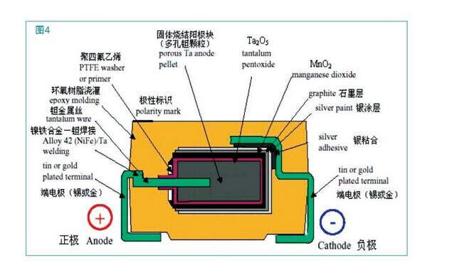 結成一多孔的堅實芯塊(圓柱形狀),芯塊經過陽極化處理生成氧化膜TA2O5,再被覆固體電解質MNO2,然后